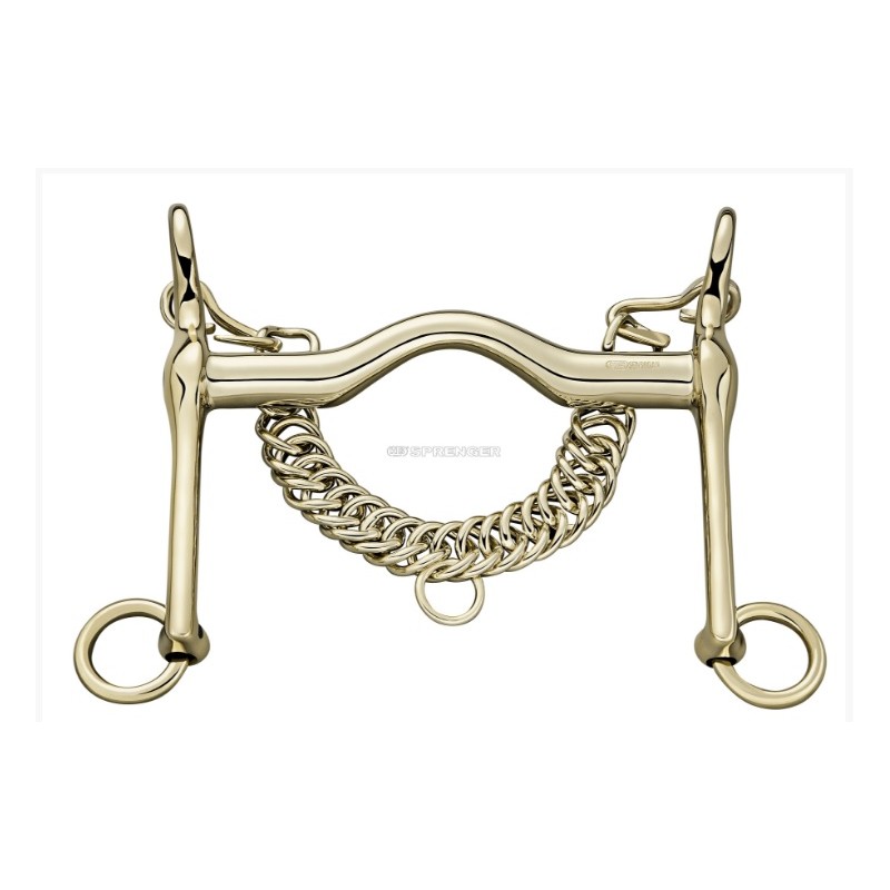 Embocadura ergonómica con una inclinación de 30º que ofrece un espacio amplio para la lengüa. Particularmente cómodo para los caballos que se irritan por tener una lengüa estrecha, reduciendo la presión en las zonas sensibles laterales de la lengüa. El jinete se beneficia de un mejor contacto.