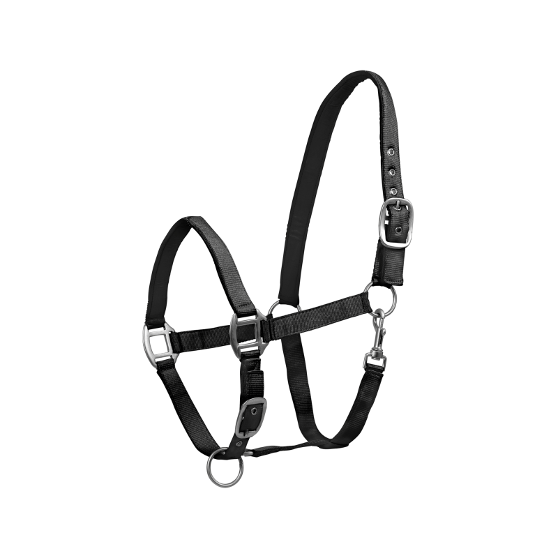 Cabeza con suave revestimiento, ajustable. Con hebillas satinadas