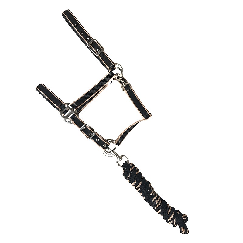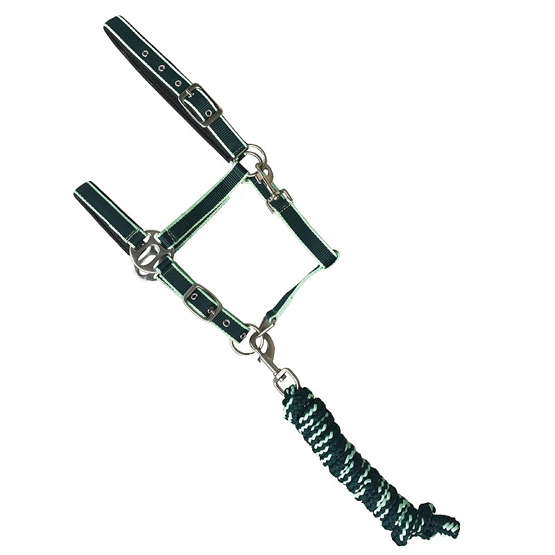 Cabezada de nylon fuerte y resistente en bonita combinación de colores.