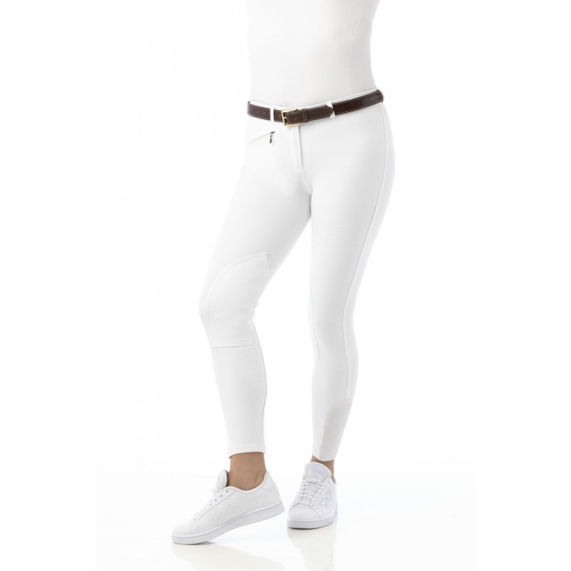 Pantalón tipo malla muy cómodo, con corte recto cerca del cuerpo con culera recortada y refuerzos de rodilla de tejido. Bolsillo con cremallera en la parte delantera derecha. Cintura antideslizante con trabillas, cierre de gancho y parte inferior elástica de elastano. Composición: 95% algodón + 5% elastano. Lavable a máquina a 40°C.