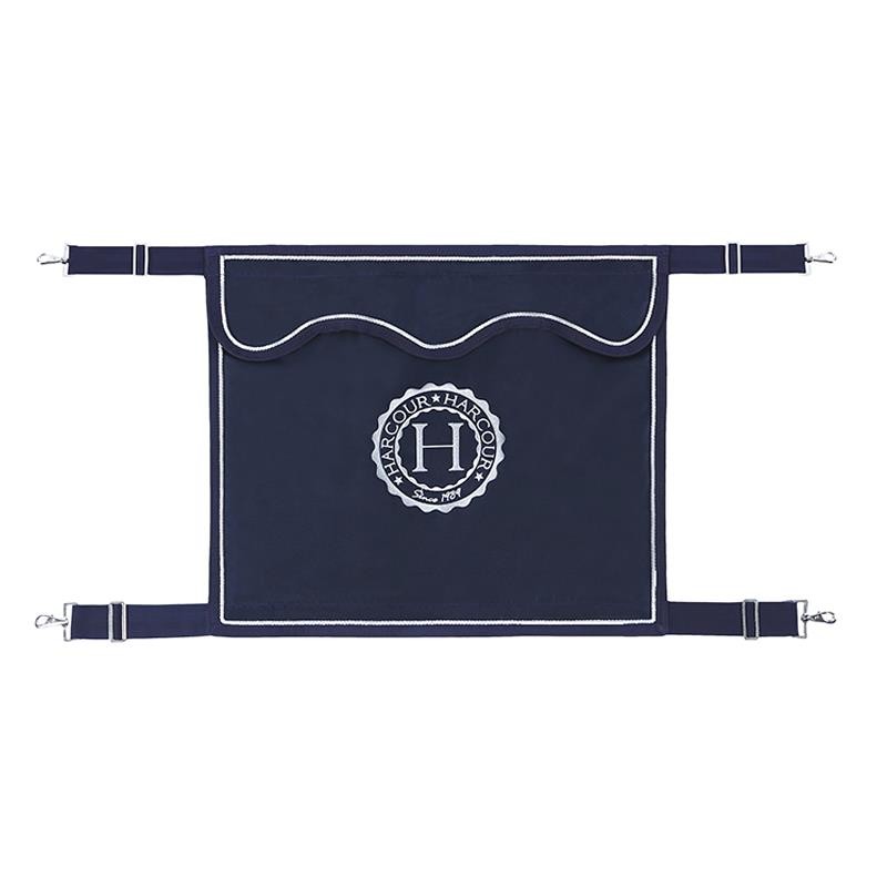 Puerta de box de poliéster 1200D marino con un cordón plateado.