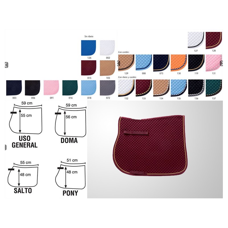 Mantillas realizadas 100% en algodón. Medidas: Uso General, Doma, Salto y Pony.