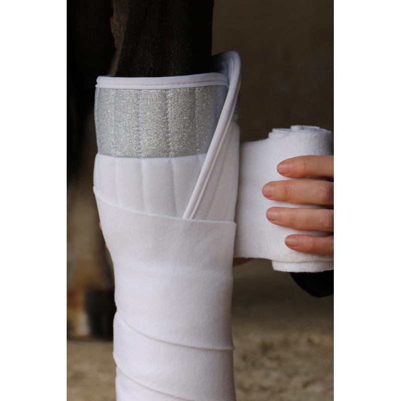 Paños de trabajo, exterior transpirable, antideslizante y suaves, se ajustan a la perfección. Borde con parche plateados y con brillos con el logo de Harcour.