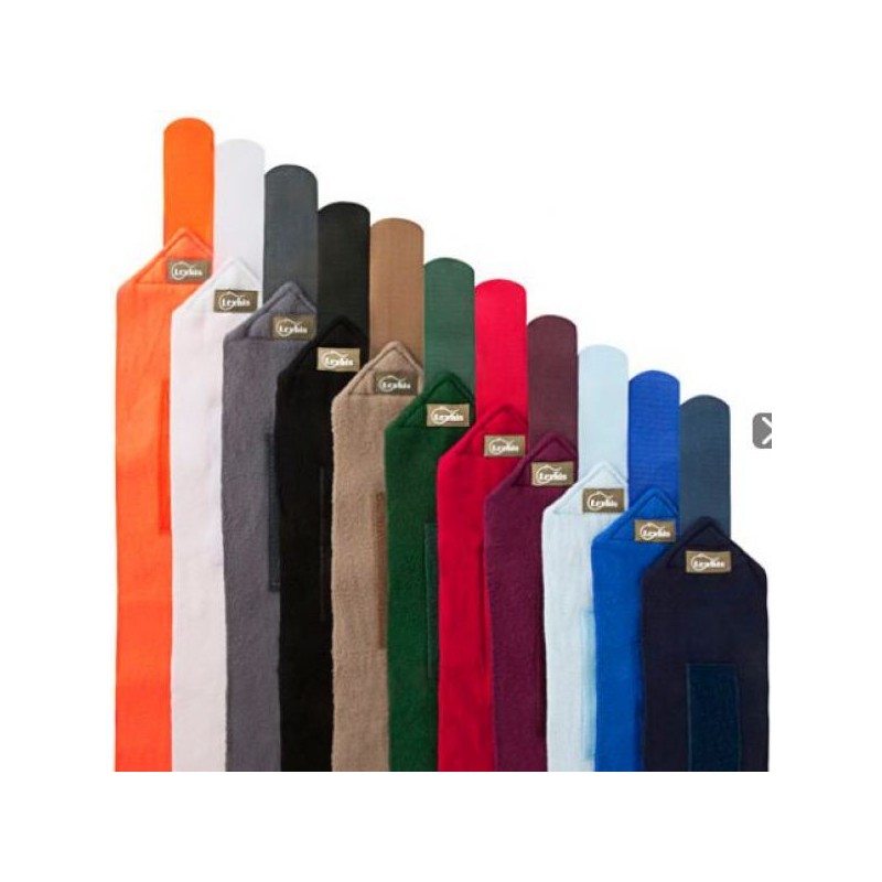 Vendas de polo de doble cara de muy buena calidad y con un grosor de 250 gr. por metro cuadrado. Longitud 3 m y anchura 12,5 cm. Cierre con velcro ancho de 50 mm. Se comercializan en bolsas con asa de 4 unidades (2 pares). Amplio surtido de colores.
