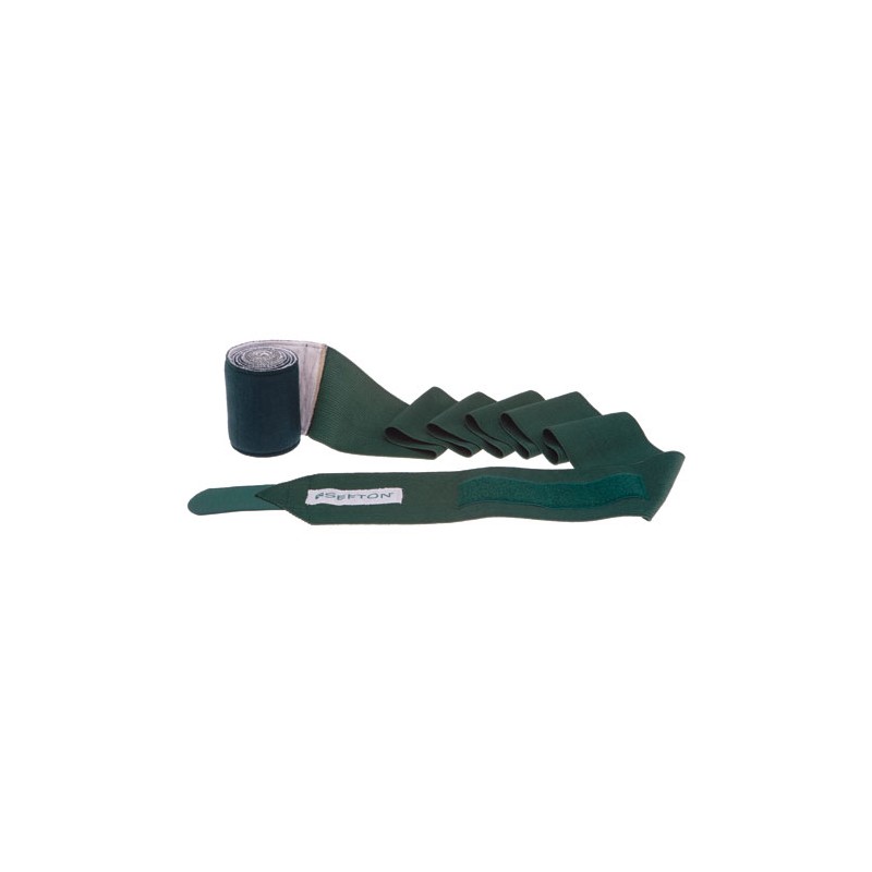 Venda que, debido a su forma y material, puede utilizarse tanto para descanso como para trabajo. Está realizada con dos materiales diferentes, siendo el principio acolchado y suave y el final elástico y fino. Fijación mediante velcro. Se comercializa por pares. Medidas: ancho 10 cm., largo 4 metros.